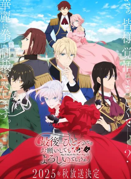 最後可以再拜托您一件事嗎的劇情簡介 · · · · · · 舞會中,史卡蕾特被第二王子凱爾宣告解除婚約,更被加諸莫須有的罪名以及〝惡役千金〞的稱號,陷入遭眾多貴族譴責的窘境。 至今為止不斷忍耐著的她,已經受夠和愚蠢的凱爾繼續交往了! 怒上心頭的史卡蕾特說出自己的請托——『請問方便讓我在最後將各位打得落花流水嗎?』